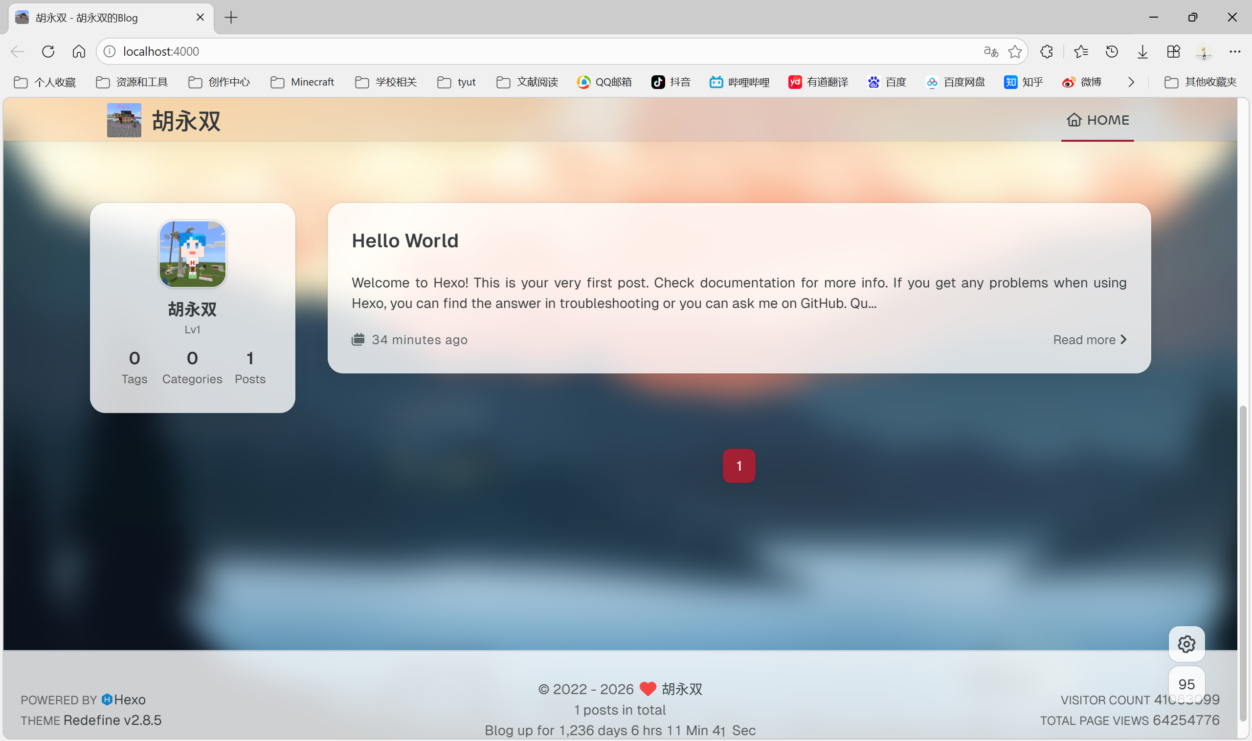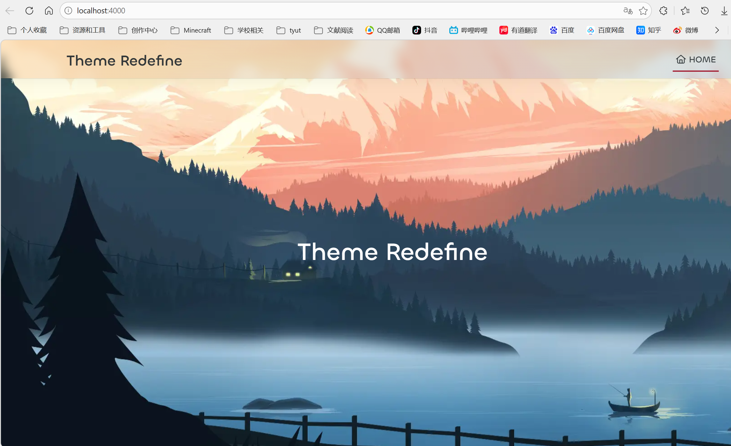下图中“主页”为英文,可以在Hexo配置文件(_config.yml)中修改language配置为:language: zh-CN即可,修改配置后,设置的英文导航栏名称也会翻译为中文。