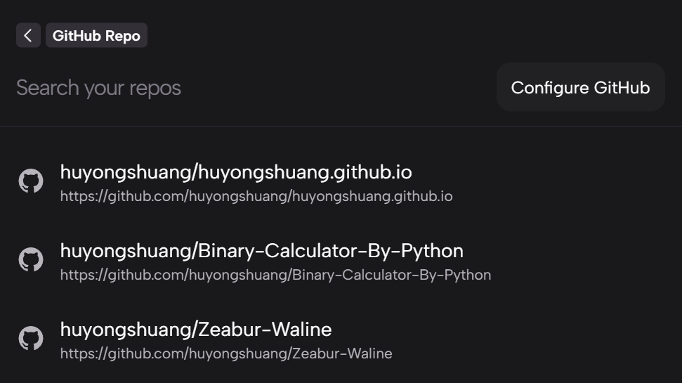 (4)接下来创建Waline服务,点击Add Service,再点击Configure GitHub按照要求配置GitHub后,在GitHub Repo页面选择最开始Fork出来的项目,点击Deploy部署。