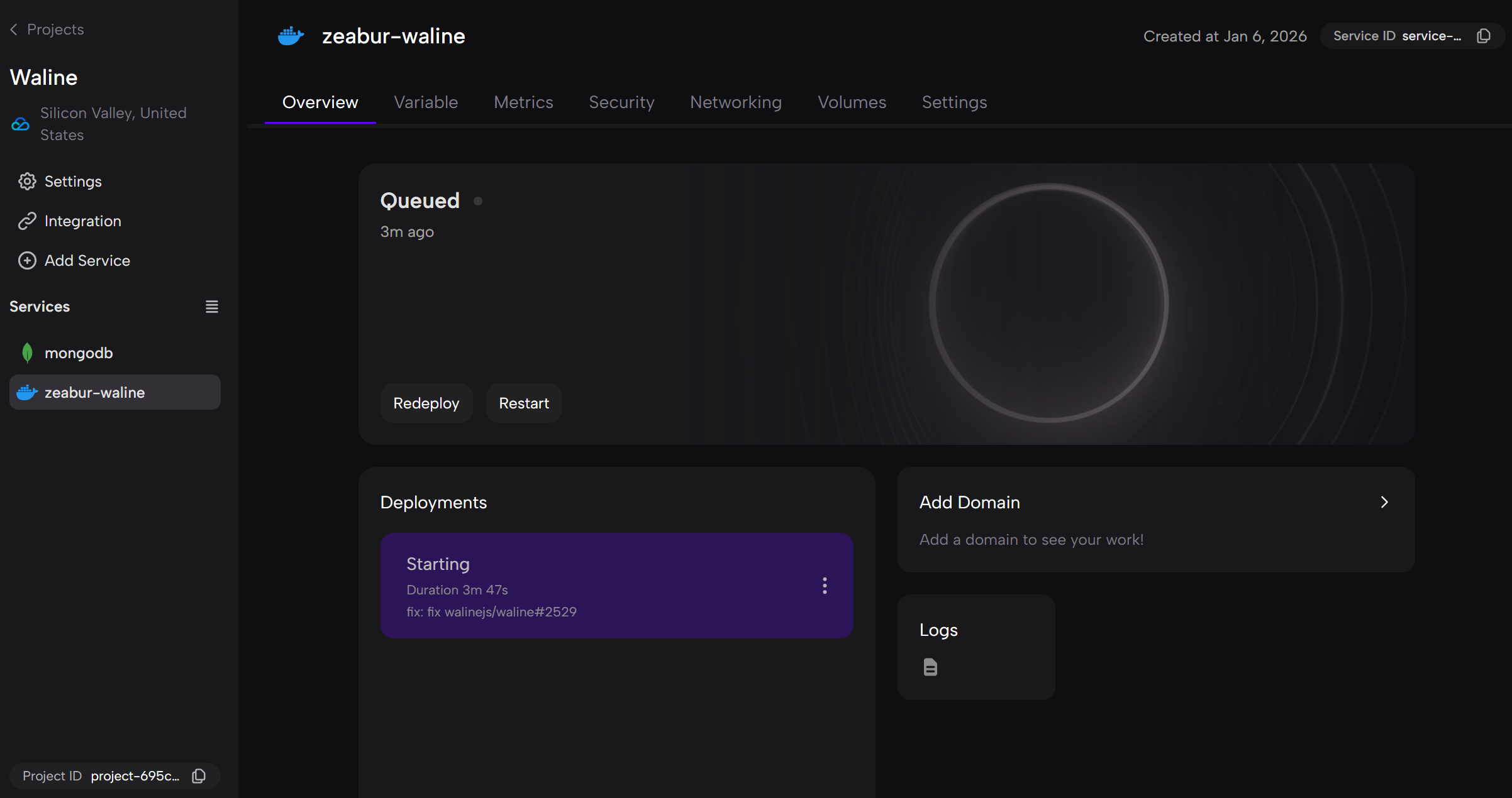 Waline支持多种部署方式,例如:Vercel,CloudBase,Netlify,Railway,Zeabur等等。大家可以选择自己合适的平台部署,下面以Zeabur部署为例,其他部署方式见官方文档。