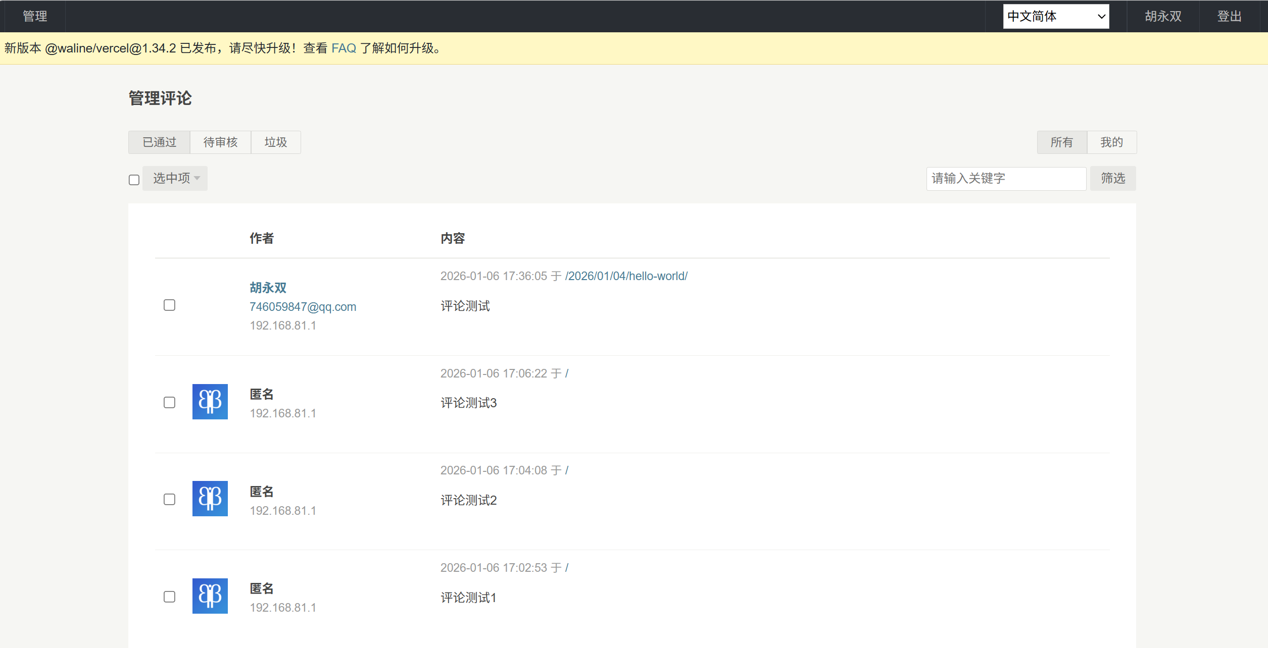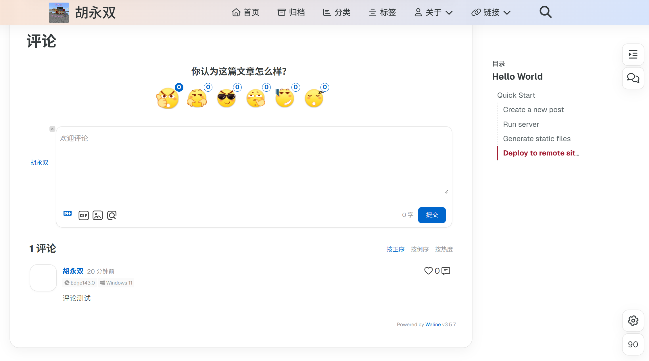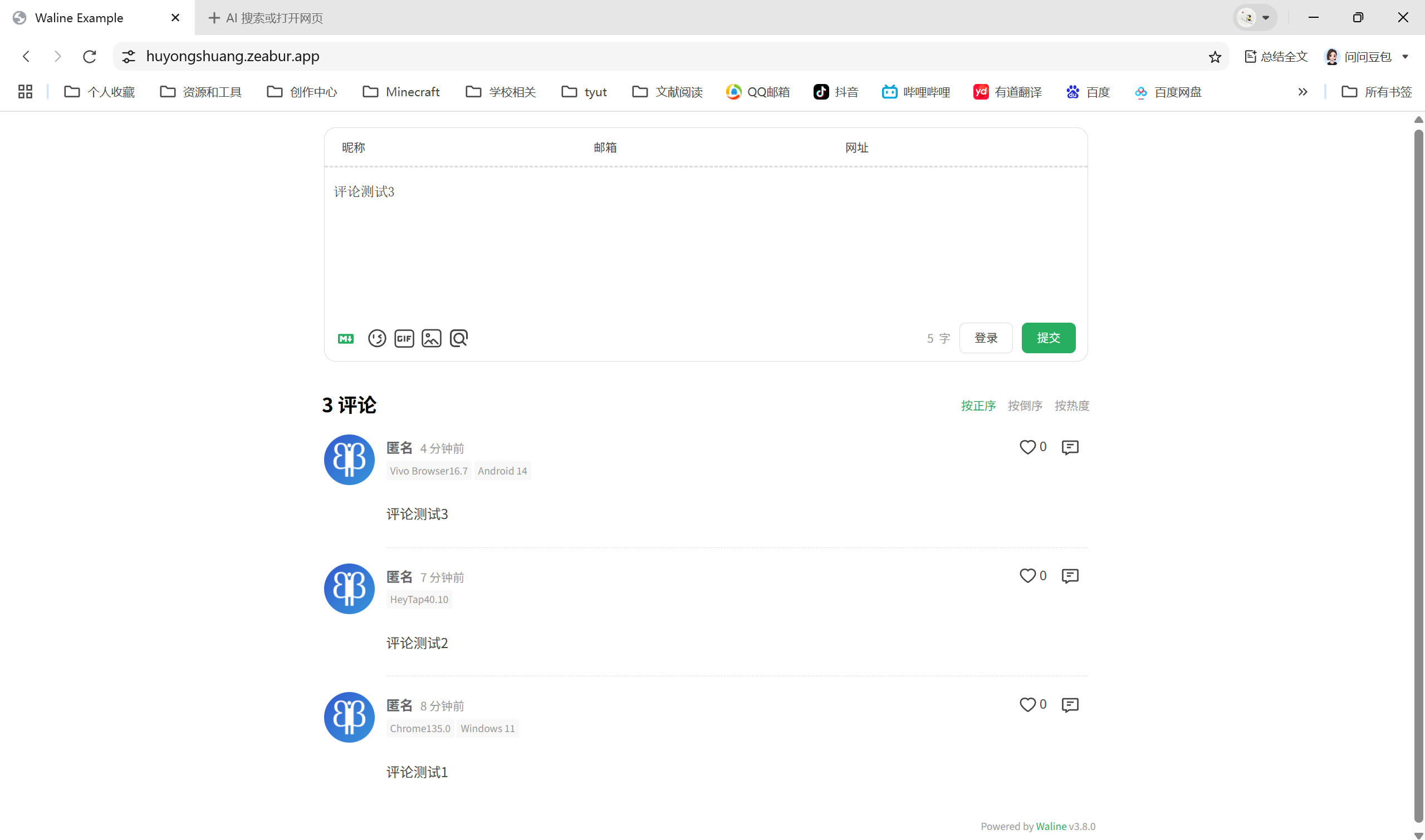 (6)在浏览器打开刚才设置的访问域名,测试下评论发布。