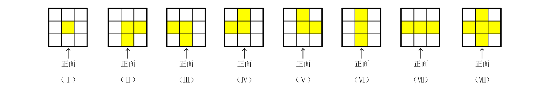 下图是完成顶面十字还原之后顶面可能会出现的7种状态。